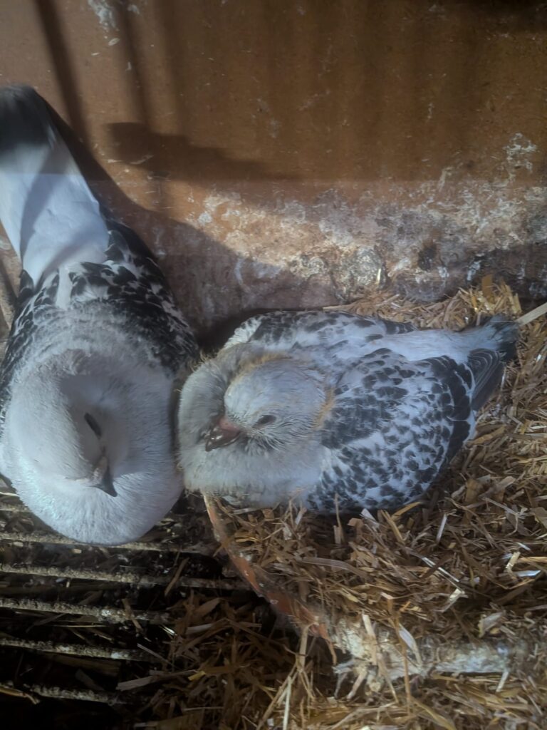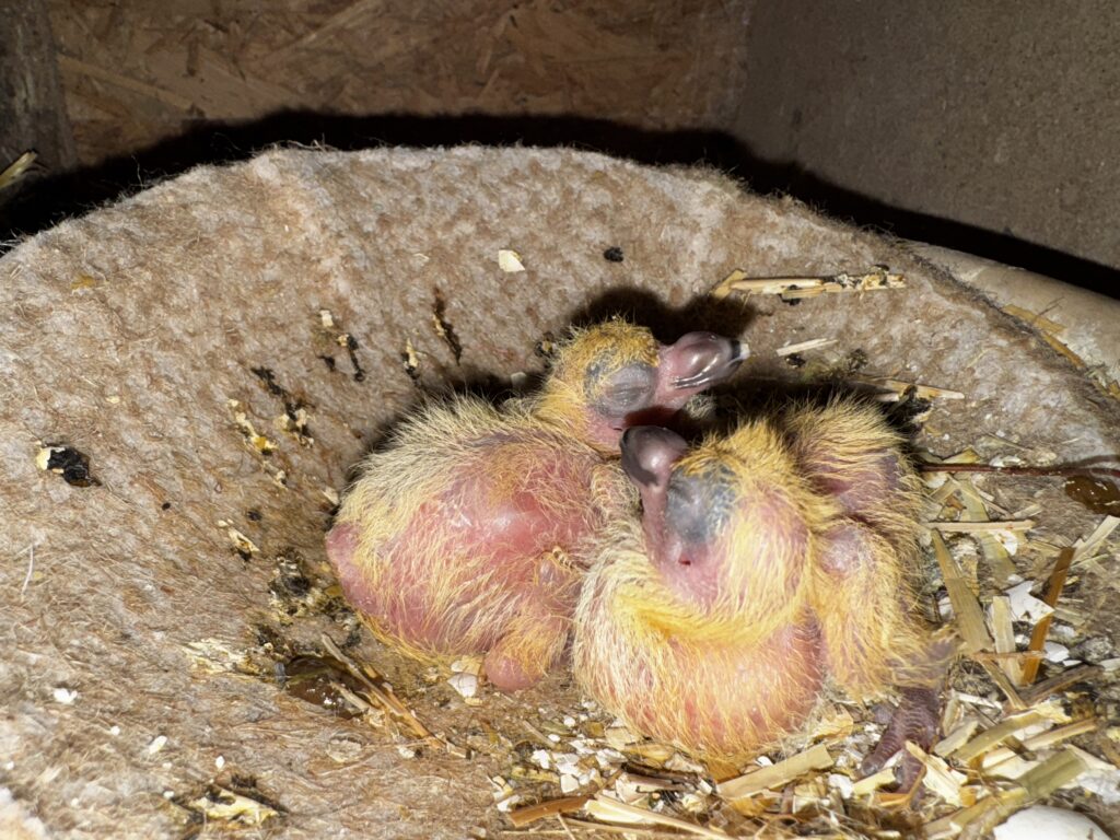 Ein hervorragend entwickeltes gehämmertes Jungtier bei Norbert LagerZwei wenige Tage alte Jungtauben bei René Stephan. Die Kröpfe sind gut mit Kropfmilch gefülltNur wenige Tage ältere Jungtiere bei René Stephan. Allmählich kommen Körner bei der Fütterung durch die Eltern hinzu.